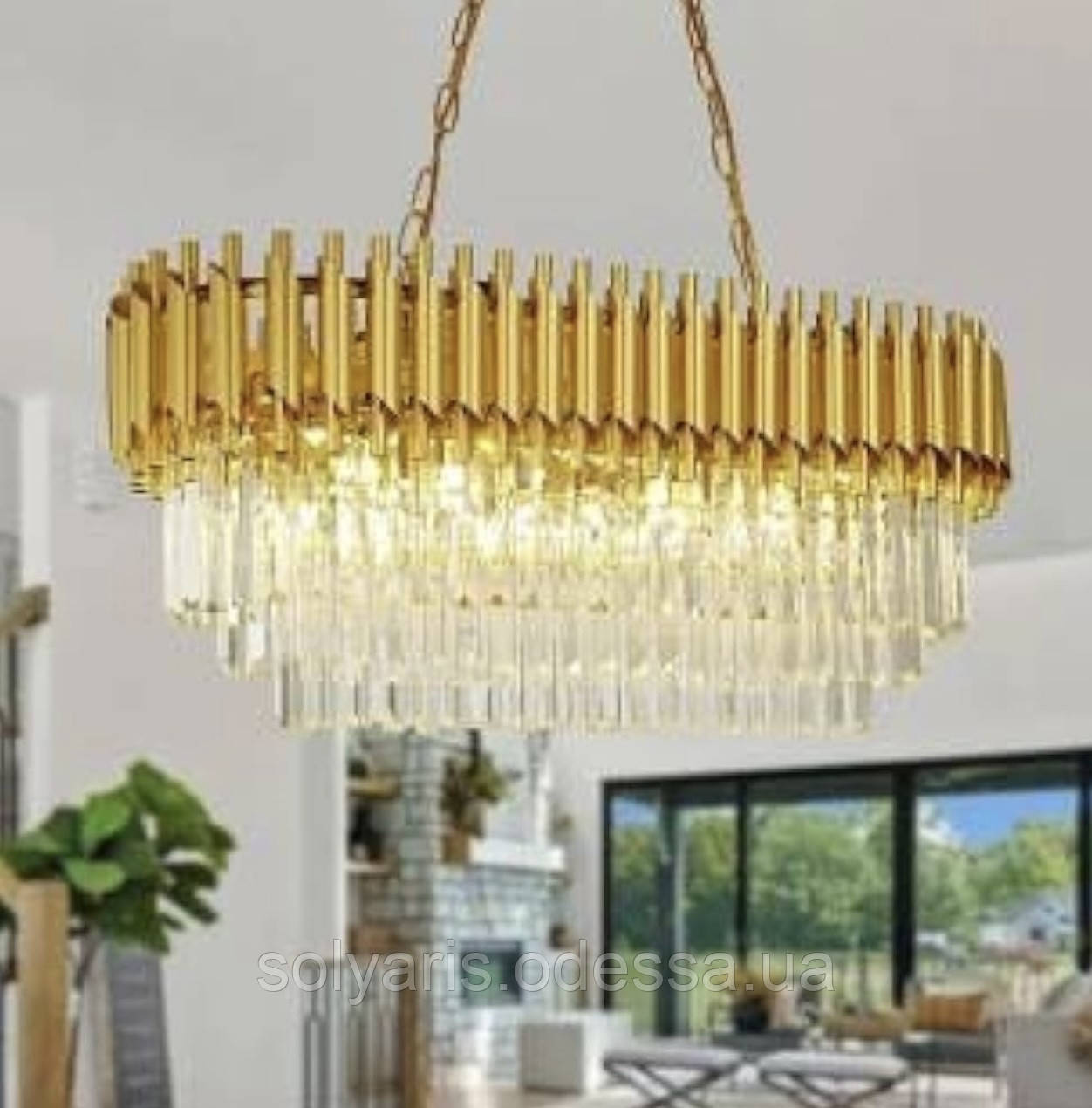 Кришталева люстра овальної форми для вітальні на 8 ламп завдовжки 78 см 221013